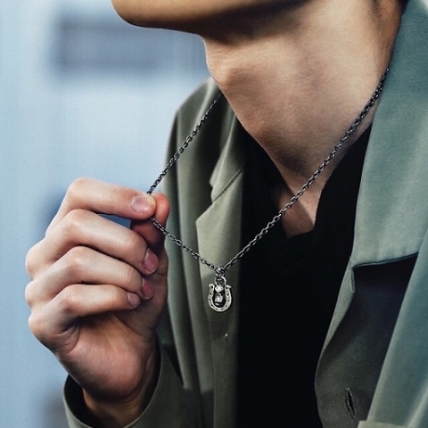 重厚感ある燻しチェーンを合わせることで、ポップすぎないクールな印象に。