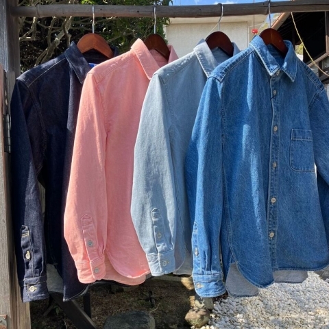 通年使いやすい生地の厚さで、ドライタッチな風合いも特徴。ID、LIDは経年変化も楽しめるインディゴ染め、PINは硫化染め、FADはインディゴ染めを施し、長年着用したような色落ちを再現したフェードカラーになっております。