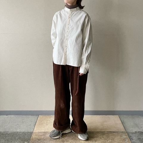 様々なシーンで活躍してくれるバンドカラーシャツです。