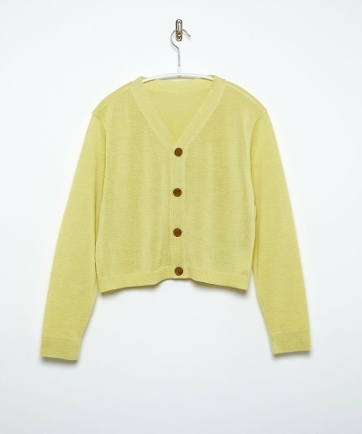 ショート丈でボックスシルエットのVネックカーディガン。