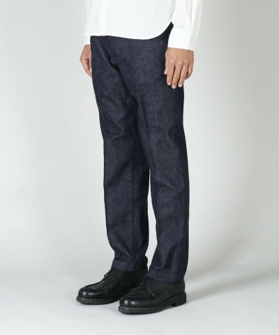 細身でキレイ目な印象のデニムトラウザーは