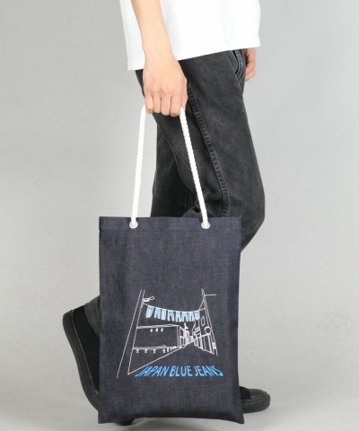 前面には、児島ジーンズストリートの街並みのイラストをプリント!