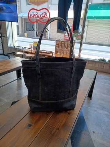 本体のデニム生地、持ち手のレザーどちらも経年変化をお楽しみいただけます!!