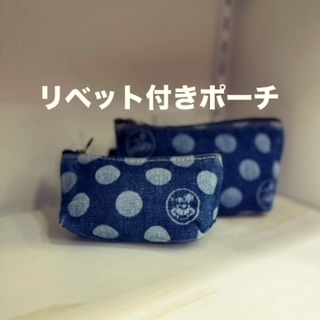 リベット付きポーチ✨ 中色 / 中 / 小 ¥ 1,925 - ¥ 1,650 - 人気アイテム ドット柄に紛れてインディゴリラくんいます