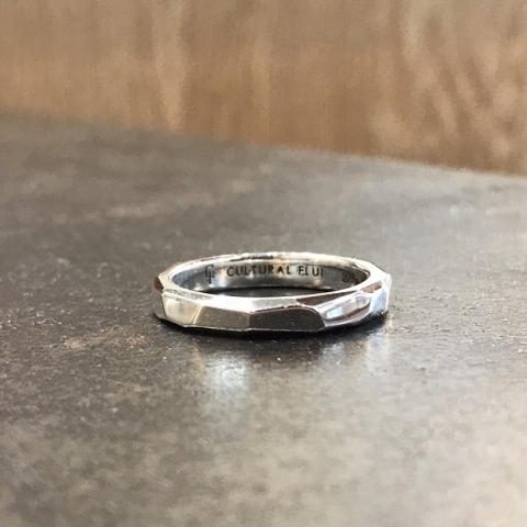 ランダムにカットされたこのリングはゴツゴツしているイメージがあるが着用するととても指に馴染み指の細い女性もさり気なく着ける事が出来ます。