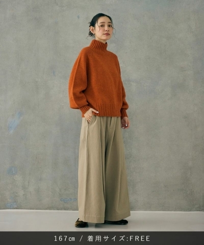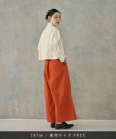 ゆったりとしたシルエットながらハイウエストのため、短めのトップスを合わせたりタックインをしてウエスト周りをすっきりさせれば脚長効果も叶います。
