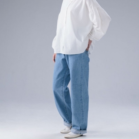 ロールアップすることを前提にレングスはあえて長めにとり、着こなしにアクセントを入れられるのが特徴的。