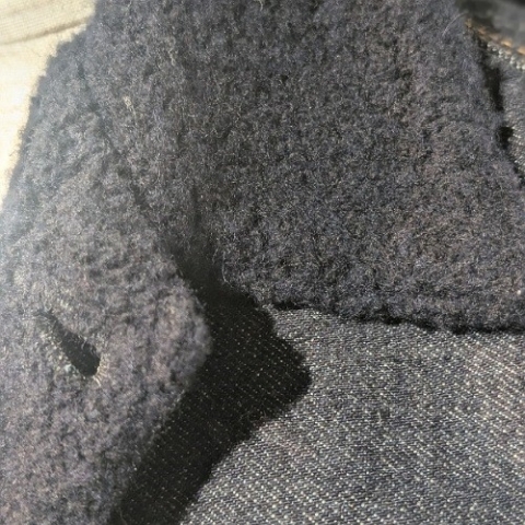 襟・身頃裏にウールボアを使用することによって、保温性をアップさせています。