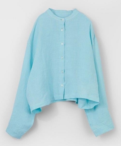 首元がすっきり見えるバンドカラーのシャツ。