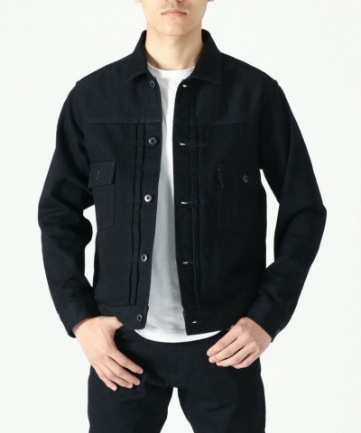 中肉厚でしっかりした着心地のブラックデニム生地で