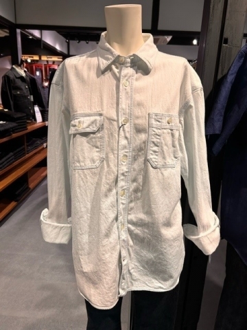 三本針の巻き縫い仕様の本格的なワークシャツでありながら、洗練された上品さを兼ね備えた1着です。衿はコンパクトに、縫製を細かく仕上げ、洗練された印象を与えます。