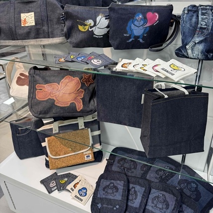 児島ならではの加工技術を生かしたポップでかわいい雑貨を豊富に取り揃えており、国産デニムをより身近に感じていただけます。