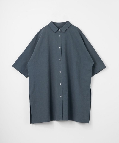 縦のラインが美しいミドルレングスの5分袖シャツ。