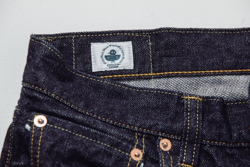 染色には、100%ピュア・インディゴを用いたロープ染色を採用。糸の芯に白さを残す「中白(なかじろ)」の構造が、穿きこむほどに美しい色落ちを生み出します。色味は、1950年代のクラシックな中濃色。流行に左右されず、時を超えて愛されるトーンです。