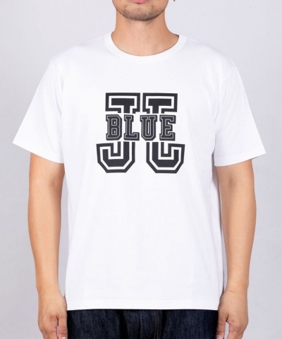 JAPAN BLUE JEANSのブランドネームをやや大きめにプリントした存在感あるカレッジTシャツ。