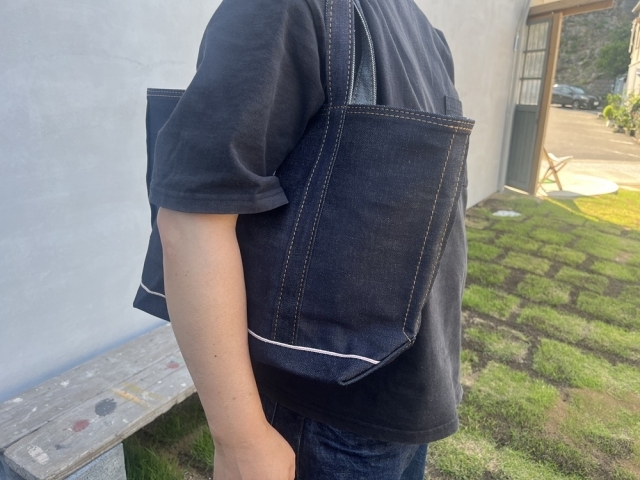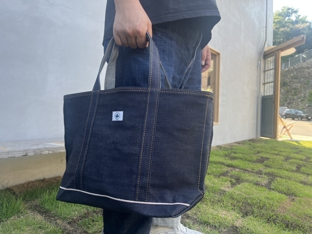14ozセルヴィッチデニムを贅沢に使用したこのトートバッグは、丈夫さと経年変化の美しさが魅力。ラフに使っても様になる、まさに“育てるバッグ”です。