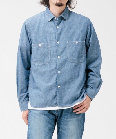 身幅を大きくとり、丈も少し短めのワークシャツ。