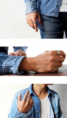 平打ちのシンプルなフォルムのリングに幾何学模様を盛り込んでおり、存在感バツグンです。