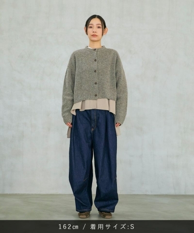 ヒップ回りを大きくとり、裾に向かってテーパードがかかったボリュームのあるワイドシルエット。