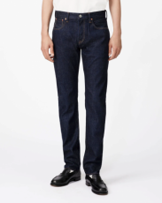 やや浅めの股上で、ゆるやかなテーパードがかかる細身のストレート。