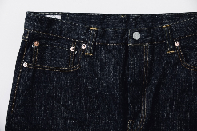 製織には、国産デニム織機の原点ともいえる「豊田力織機」を使用。極限まで弱テンションで織ることで生まれる独特のザラ感は、現行機では再現できない特別な質感です。仕上げもまた、生地本来の魅力を活かすために未防縮・ねじれ防止加工・毛焼きを施さず、キバタの状態からワンウォッシュを実施。綿そのものの風合いを存分に楽しめる一本に仕上がっています。