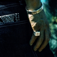 60年代のヴィンテージバンダナから着想を得て製作された、RIVULETシリーズを代表する印台リング。ヴィンテージバンダナの中でもコアな人気を誇るクッキー柄。そのモチーフであるペイズリーや草花を大胆に彫刻しリング全体でクッキー柄バンダナを表現しています。遊び心あふれるポップなデザインは、経年変化によるヴィンテージ感が加わることでさらに魅力を増すよう意図してデザインされています。裏抜きなしで仕上げたシルバー925特有の重厚感と心地よい装着感も魅力。紳士の象徴である印台リングに遊び心を添えた、大人の余裕を映すアクセサリーです。