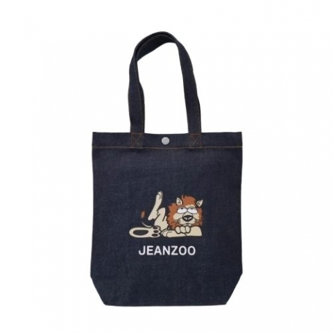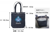 JEANZOOオリジナルキャラクターのプリントが施されたトートバッグのデニム生地タイプ。