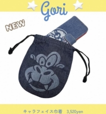 NEW!! 『キャラフェイス巾着』ゴリ item number:JZ047 color:IND price:¥3,520-(tax in) スマホが丁度入る大きさです