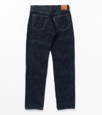 生地には15.5ozのスラブネップデニムを使用。ムラ感のあるロングスラブ糸とネップ糸による表情豊かな生地は、穿き込むほどに縦に落ちるタテ落ちが現れます。黒っぽく見えるまでインディゴを濃く染め上げている為、コントラストのある色落ちも魅力です。