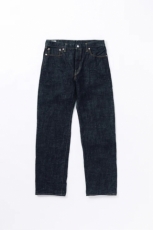 このモデルの大きな魅力は、やはり生地。15.5ozのスラブネップデニムを使用し、ムラ感の強いロングスラブ糸とネップ糸による、表情豊かな生地感が特徴です。新品の状態でも凹凸感があり、穿き込むほどに縦にスッと落ちるタテ落ちが現れ、経年変化をしっかり楽しめます。