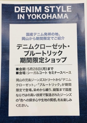 トップページ > ショップ一覧 > DenimCloset From KURASHIKI > ショップからのお知らせ