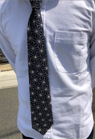 今季の新作刺し子風ネクタイをアクセントにしたスタイリング(^^)