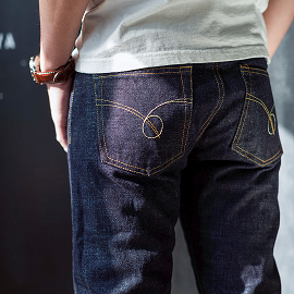 穿きこみを重ねていくうちに生地が体型に沿っていき柔らかく馴染んでいきます。