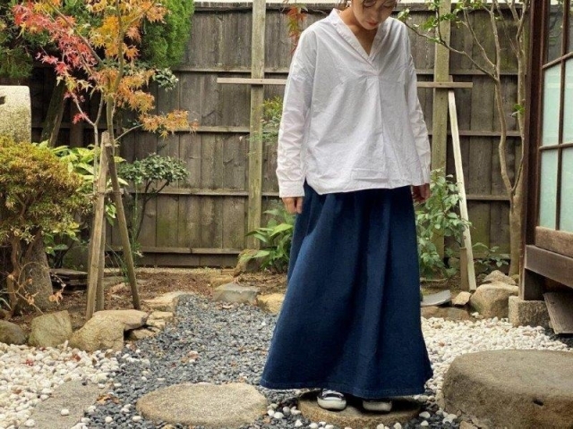 デニムフリークな伊藤さんらしいボリューム感のあるスカートを軸に