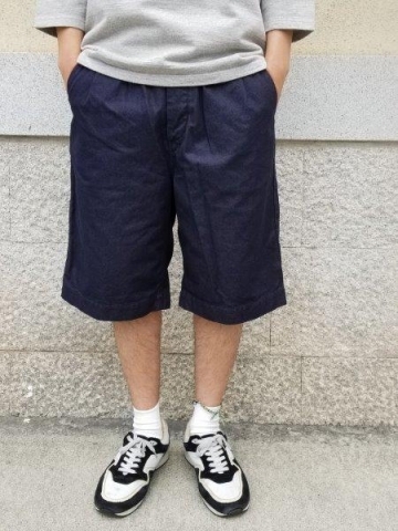 長すぎず短すぎず絶妙な丈感のデニムショートパンツ。