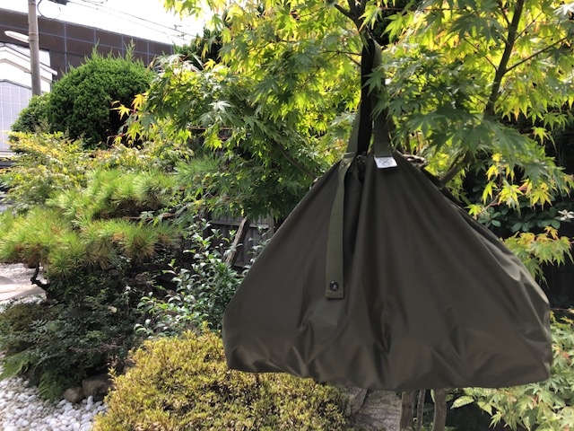 買い物かごにスッポリ入る大き目なリユーザブル巾着バッグです。