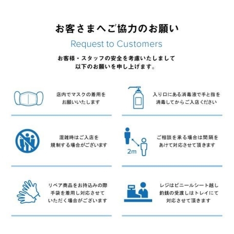 JAPAN BLUE JEANSでは、スタッフ・お客様の安全を第一に考え、