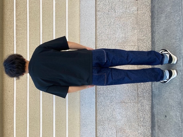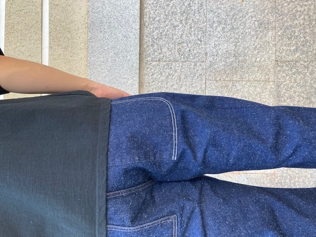 バックポケットは敢えて左右非対称にし、右側にはジャパンブルージーンズの"J"がステッチしてあります。