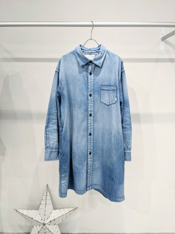 ヴィンテージライクなロングデニムシャツです。