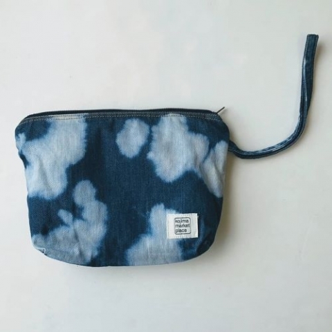 斑に染めた柔らかい生地のストラップ付きポーチです。