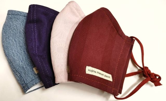 レーザー加工でほんのり柄を施したカラフルな生地とUSED加工のデニム生地のマスクが