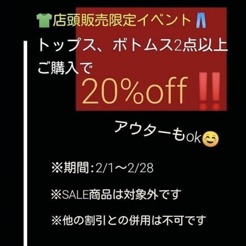 ◉トップス,ボトムス,アウターを2点以上お買い上げで20%off