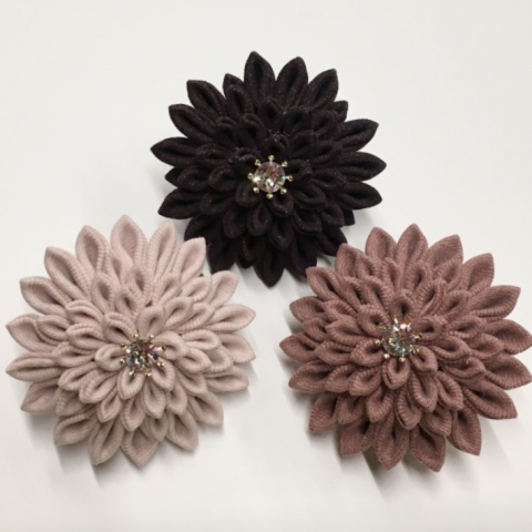 『ベンガラつまみ細工 ダリアブローチ』