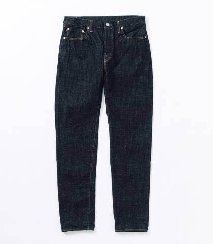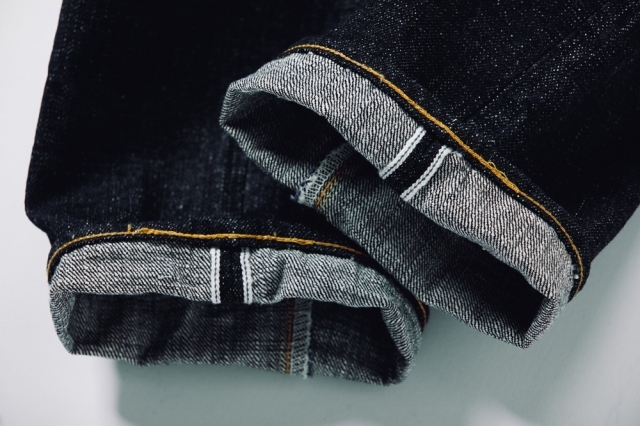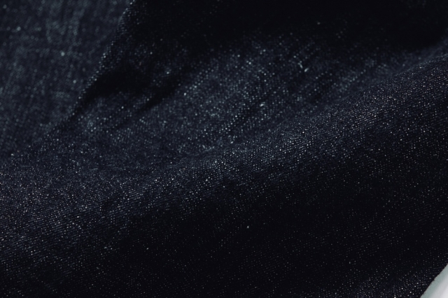 生地には15.5ozのスラブネップデニムを使用。ムラ感の強いロングスラブ糸とネップ糸ならではの表情があり、穿き込むほどに縦に落ちるタテ落ちや、コントラストのある色落ちが楽しめます。