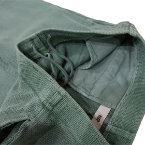伝統的な幾何学模様の美しい一重刺し子生地を使用したピュアスウェットパンツのグリーンタイプ。