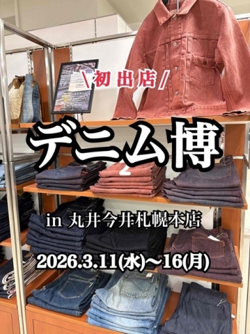 本日より北海道の丸井今井札幌本店にて『デニム博』を開催致しております♪ お近くにお越しの際は、是非お立ち寄り下さいませ。 場所: 9階催事場 期間:2026/3/11(水)〜3/16(月) 時間:10:30~19:30(最終日17: 00まで)