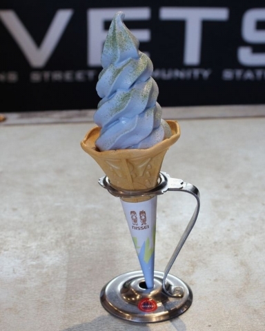 爽やかな塩バニラ味の藍色ソフトクリーム