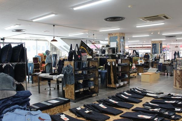 デニム小物や産地ならではのアウトレット品、さらにはデニムの原反までもが買える、