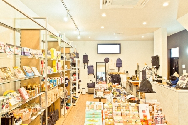 デニムや帆布の雑貨品や瀬戸内の美味しい名産品を取り扱うお土産店。