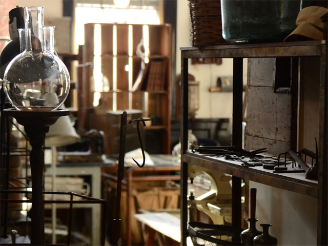 旧銀行跡の建物内には所狭しと古いものが立ち並ぶ。